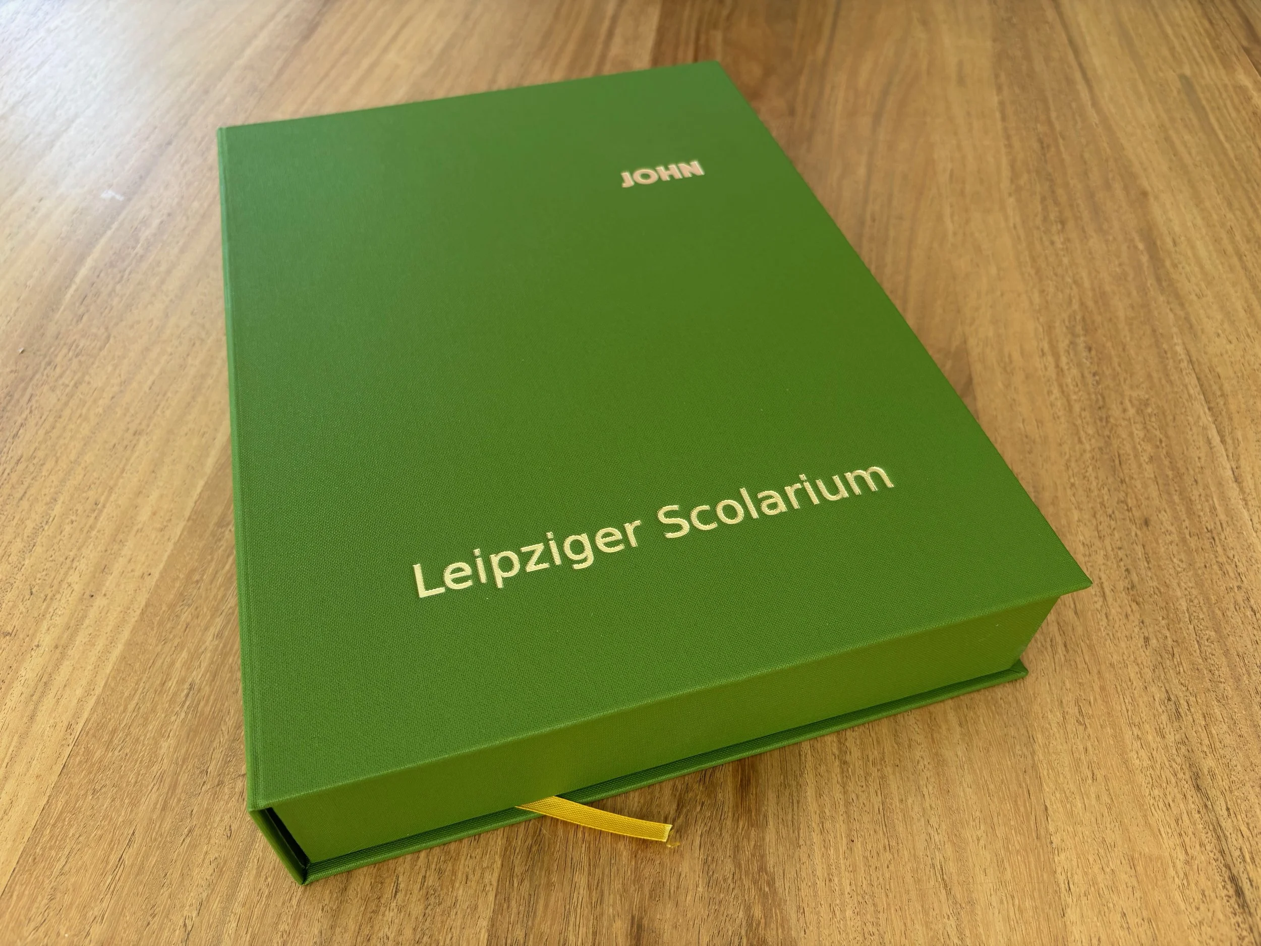 Das Leipziger Scolarium ist ein zeitloses Stück Handwerkskunst. Es kann über Jahrzehnte an seinem Platz im Regal stehen, seinen beeindruckenden breiten Rücken zeigen und lange darauf warten, dass ein Vater oder eine Großmutter den Kindern und Enkelkindern zeigen möchte, wie das früher in der Schule war.