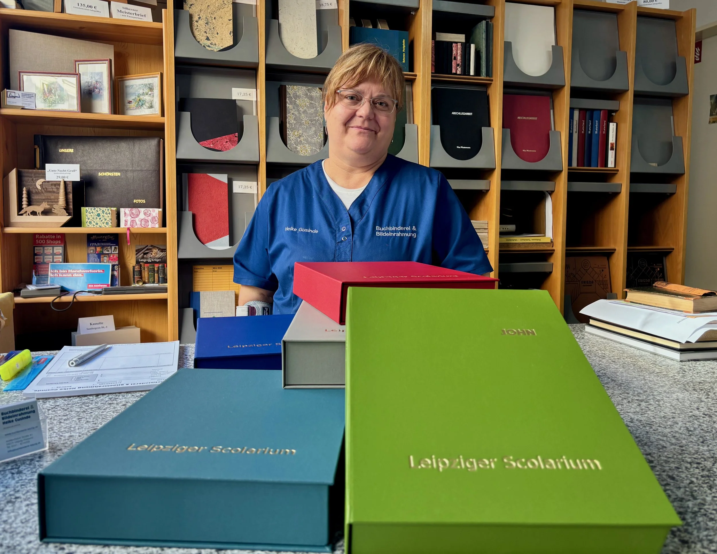 Wir sind Sylvia Koschewski und Frank Schlößer aus Leipzig. Weil wir helfen wollen, unsere Buchstadt weiter zu beleben, haben wir dafür gesorgt, dass der Name des Scolariums mit der Stadt verbunden bleibt. Wir wünschen uns, dass das Leipziger Scolarium ein Leben lang benutzt und bewundert wird. Deshalb haben wir es in der traditionsreichen Buchbinderei von Heike Gusinde in Leipzig-Plagwitz hergestellen lassen. Die “Gutenberg Verlag und Druckerei” in der Leipziger Baumwollspinnerei hat das Buch für das Leipziger Scolarium gedruckt.